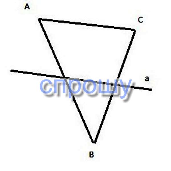 Данная прямая и три точки A,B,C, не лежащие на этой прямой. Известно, что отрезок АВ пересекает прямую, а отрезок АС не пересекает её. Пересекает ли прямую отрезокВС? Объясните ответ.