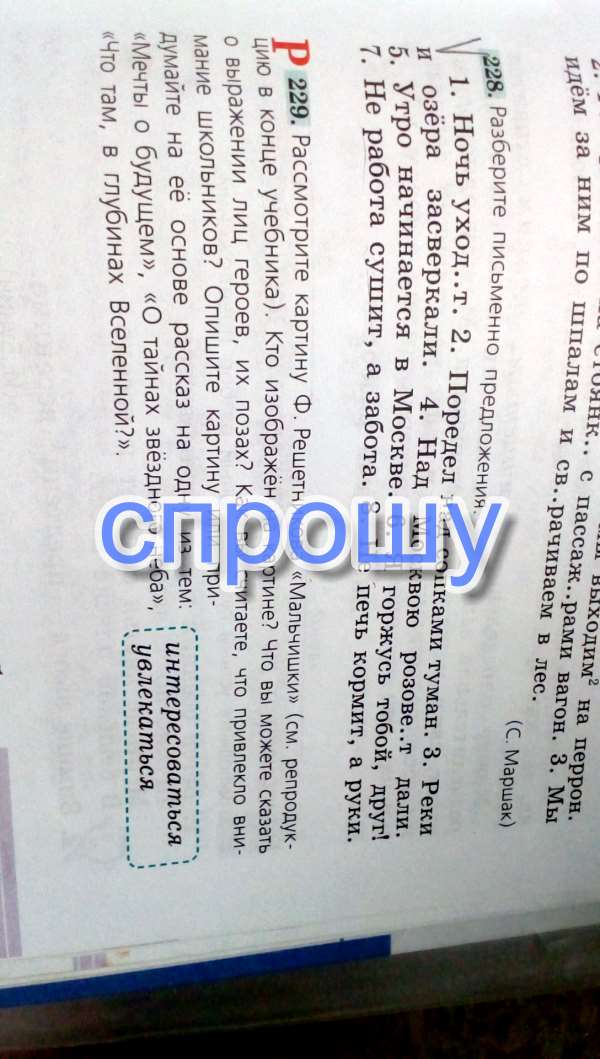 Ночь -подлежащие, уходит-сказуемое.Туман-последующие , поредел-сказуемое , над сопками-обстоятельство .Реки и озера-подлежащие , засверкали -сказуемое.Дали-подлежащие , розовеют -сказуемое ,над Москвой -обстоятельство .Утро-подлежащие , начинается-сказуемое , в Москве -обстоятельство .Я-подлежащие ,горжусь -сказуемое , друг -дополнение , тобой-дополнение.Забота-подлежащие , сушит-сказуемое , не работа -дополнение .Руки-подлежащие , кормят-сказуемое , не печь -дополнение