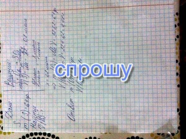 Вот все решение Масса=6.4 гр Обьем=4,48 л