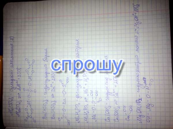 Назовите и запишите графические формулы следующих соединений: Al2(SO4)3, Ba(HSO3)2, NaH2PO4, Cа(ОН)2, MgOHNO2. Запишите уравнения электролитической диссоциации этих соединений в водном растворе