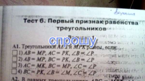 A1 . Треугольники ABC и MPK равны , если: