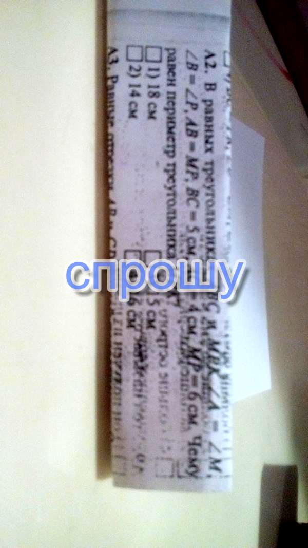 в равных треугольниках ABC и MPK угол A = угол M , угол B = угол P , AB = MP , BC = 5 см, AC = 4 см , MP = 6 см.Чему равен периметр треугольника MPK?