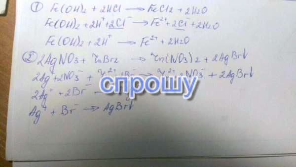 Напишите уравнение реакции ионного обмена в молекулярной и ионных формах; Fe(OH)2+HCL ; нитрат серебра +бромид цинка