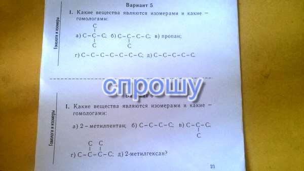 Вариант 5 (1). Какие вещества являются изомерами и какие гомологами(см.фото)
