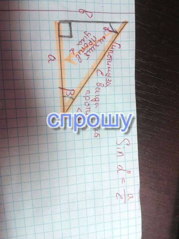 Синус- отношение катета противолежащего углу к гипотинузе