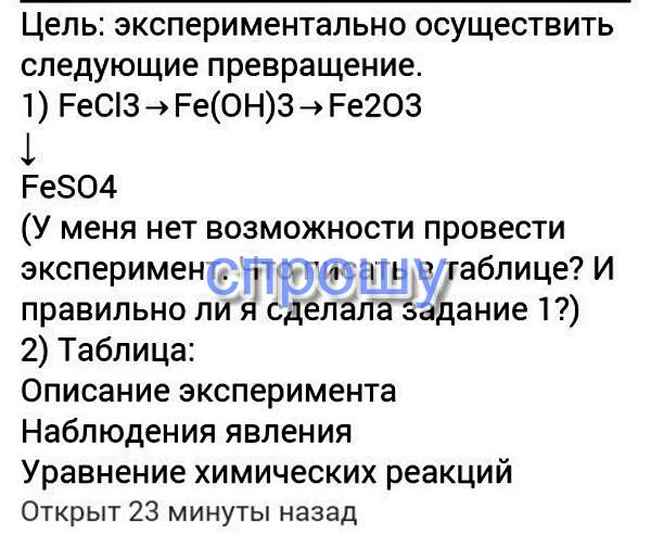 Наблюдения: в ходе реакции образуется осадок светло-желтого цвета-Fe2(SO4)3(изменение цвета).