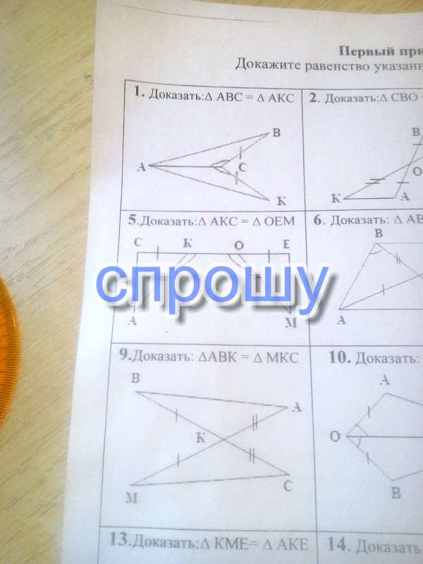 Док-во: CK=OE (по условию); AK=OM (по условию); KO-общая.