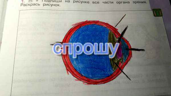 Подпиши на рисунке все части органа зрения. Раскрась рисунок.