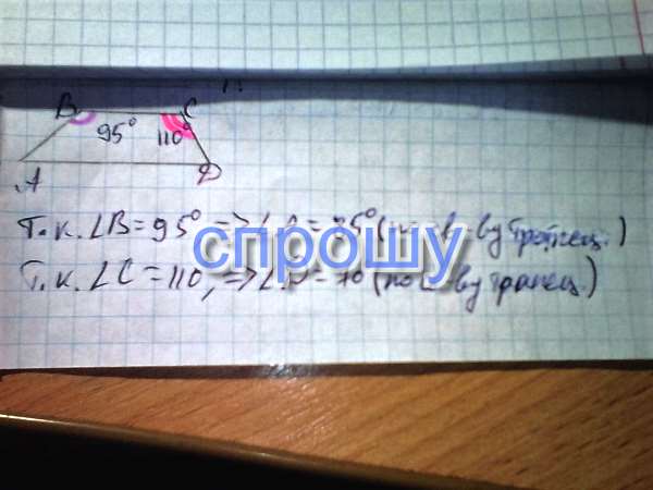 В трапеции АВСД с основаниями АД и ВС угол В равен 95о, а угол С равен 110о. Найдите остальные углы трапеции