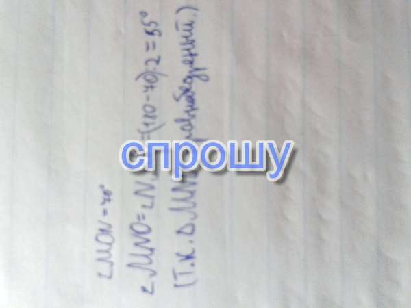 В прямоугольнике. MNPQ диагонали пересекаются в точке O, угол MON = 70 гр. Найти углы треугольника MON