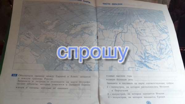 Самые высокие горы : Альпы , полуостров на котором расположена испания и португалия: Пиренейский полуостров, полуостров на котором расположена италия: Апеннинский , полуостров на котором расположена Греция : Балканский , самая большая река: Дунай