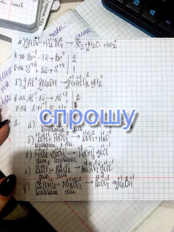 а) HBr + H2SO4 → SO2↑ + H2O + Br2