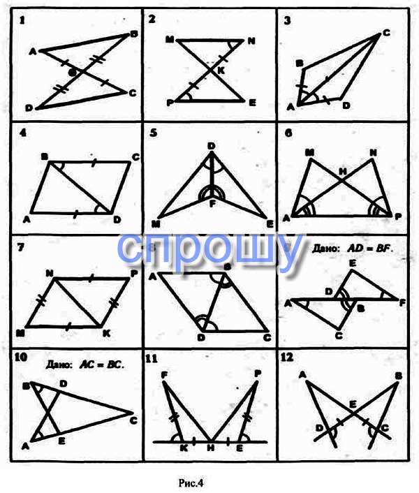 Ребяяят решите признаки равенства треугольников, найти пары равных треугольников и доказать их !!!Срооочно)