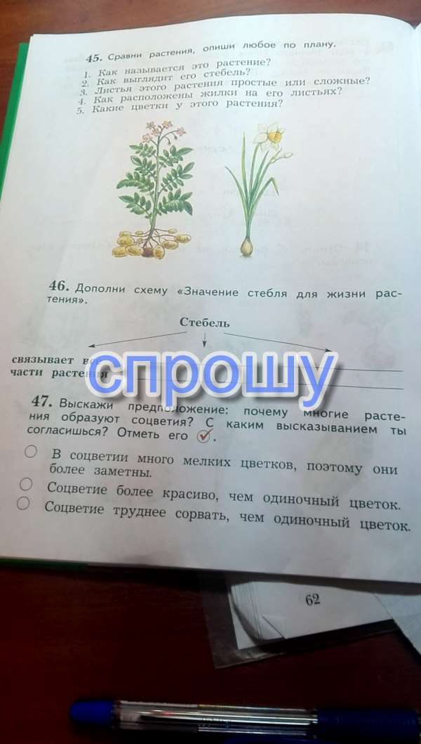 Срочно!!! Задание 46 дополни схему значение стебля для жизни растения