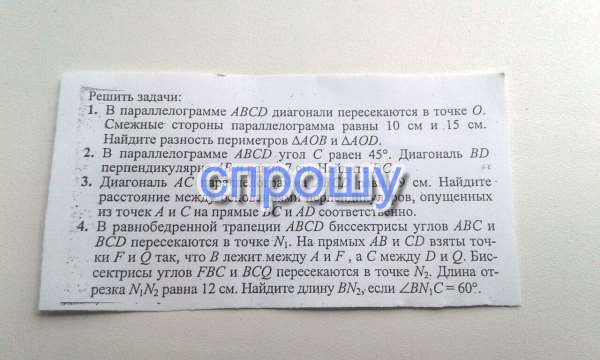 4. образуется прямоугольный четырехугольник, у него общая сторона. И эта сторона делит острый угол(60 градусов) по полам тоесть угол BN1N2=N2N1C=30градусов. И та сторона отсекает прямоугольный треугольник, следовательно сторона лежащая против угла в 30 градусов равна половине гипотенузе(т.е.половине общей стороны= 12см) следовательно BN2=12:2=6
