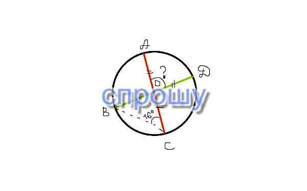 Отрезки AC b BD-Диаметры окружности с центром O. Угол ACB равен 16 градусов . Найдите угол AOD. Ответ дайте в градусах