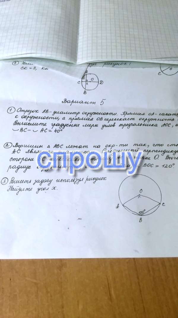 Верхняя дуга АС=100*2=200, малая дуга АС=360-200=160, х=160:2=80.