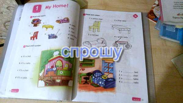 Номер 1: 1) tree house 2)chair 3)table 4)radio 5)bed