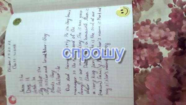 Нашему отцу Джеймсу 40. Он занятой менеджер в банке, поэтому настоящая глава семьи наша мама Бетси. Она на один год старше нашего отца. Она домохозяйка. Мама-очень добрый человек. Она-душа нашей семьи. Моего брата зовут-Марк, а сестру-Рози.
