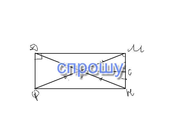 В прямоугольнике ДМНФ диаганали пересекаются в точке О. Точка С середина стороны МН. НМФ 40°. Найти угол сод