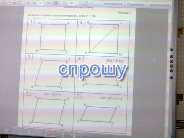 2) сторона равна=36/4=9 3) LO=SM=9,5 LS=OM=8,5 7)AB=DC=6 BC=AD=12