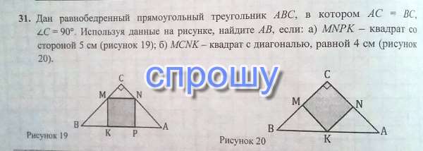 При таком чертеже у нас получаются треугольники MBK, NPA. Рассмотрим треугольник ВМК - прямоугольный, равнобедренный. МК=ВК=5 см т. к. ВМК равнобедренный. NAP - прямоугольный, раанобедренный. PN=PA=5см т. к. NAP - ранобедренный.