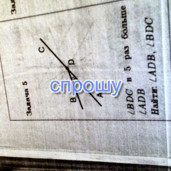 Угол BDC в 5 раз больше угла ADB Найти угол ADB,Угол BDC