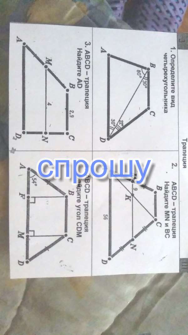 3. Можно найти через среднюю линию 1. MN•2 2. 2MN-BC=AD 1. 4•2=8 2. 8-2,9=5,1 AD=5,1 MN- средняя линия трапеции