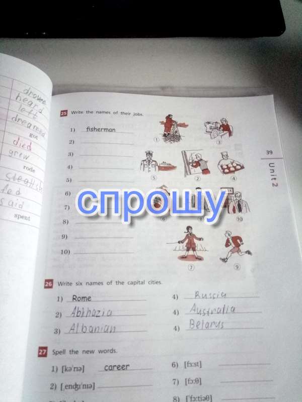 2.architect, 3.dressmaker, 4. cook, 5. sailor, 6. dentist, 8. barmen, 7., 9. runner, 10. banker
