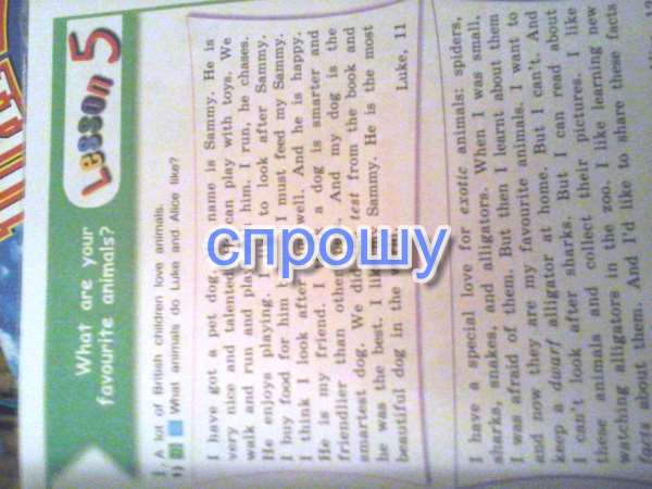 "У меня есть собака. Его имя Сэмми. Он очень хороший и талантливый. Он может играть с игрушками. Мы гуляем, бегаем и играем с ним. Я бегу, он догоняет. Он наслаждается игрой(дословный перевод). Я люблю присматривать за Сэмми. Я покупаю ему еду, потому что я обязан его кормить. Я думаю я хорошо ухаживаю за ним. И он счастлив. Он мой друг. Я думаю, что собака умнее и дружелюбнее, чем другие питомцы. И мой пес самый умный. Мы проверили его благодаря тесту из книги и он все сделал правильно. Я люблю Сэмми. Он самый красивый пес в мире.