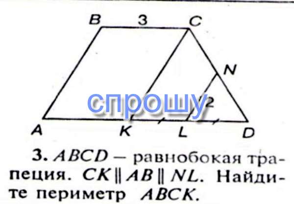 Рассмотрим четырехугольник АВСК. По условию АВ║КС, а АК║ВС по определению трапеции, Значит, АВСК - параллелограмм, в котором параллельные стороны будут попарно равны, т.е.