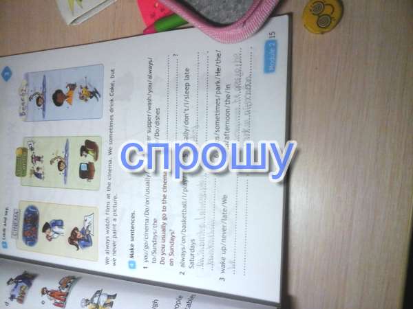 We always play basketball in the sport centre. We sometimes swim, but we never watch TV.