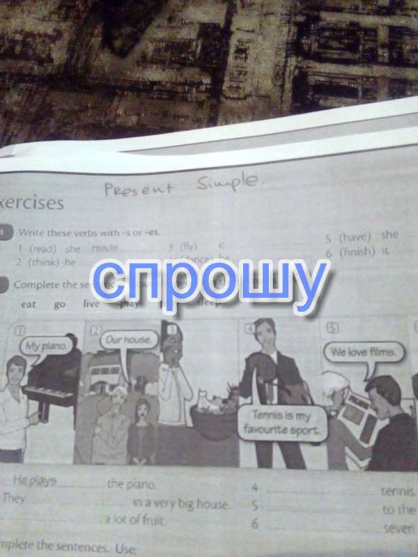 2) he thinks. 3)he flies 4)he dances. 5)she has. 6)it finishes