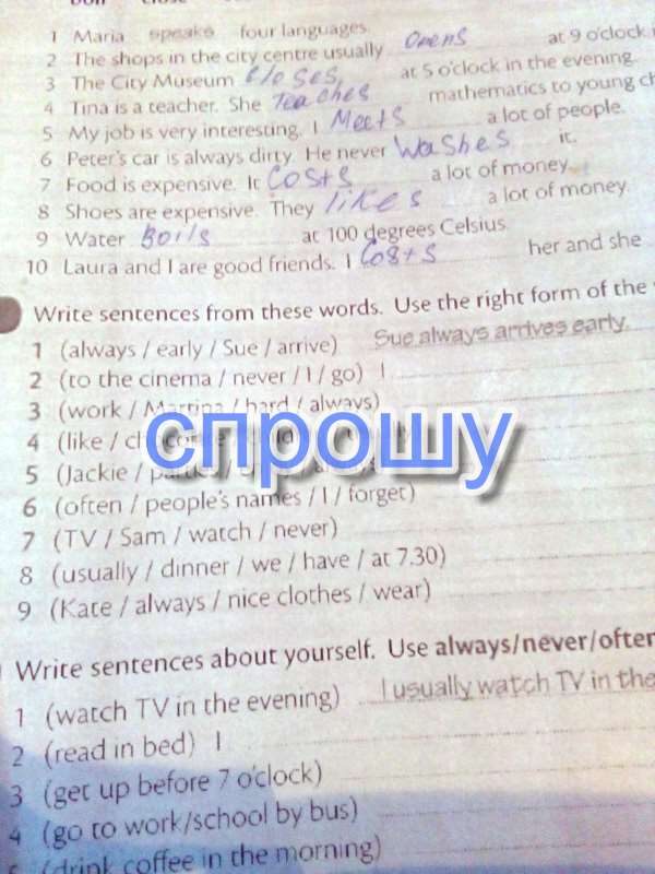 Write sentences from these words. Use the right form of the verb(arrive or arrives etc.).