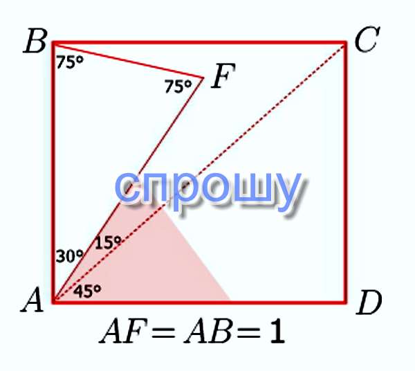 Внутри квадрата, сторона которого равна 1 см, отмечена такая точка ,F, что угол AFB равен 75 градусов, а угол.FAD = 60 градусов. Найдите длину отрезка AF.