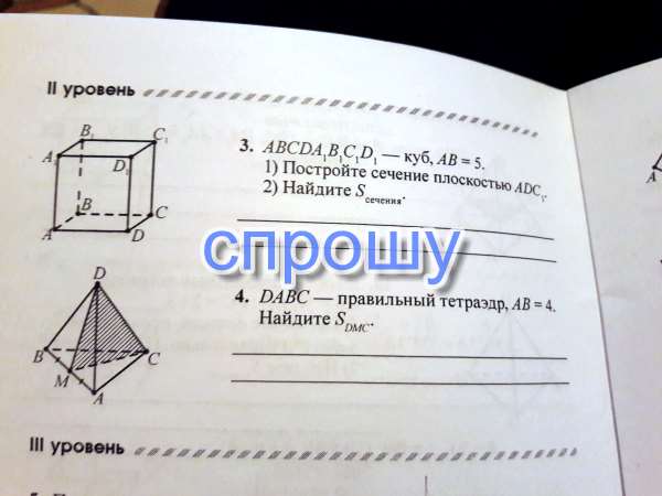 Помогите! Номер 4. Надо найти площадь сечения, если ребро = 4