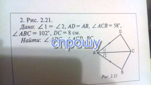 Угол ADC=угол АBC = 102, угол ACD=угол ACB = 50, ВС = DC=8см.