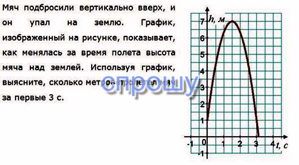 Там по точкам нужно смотреть, 3 секунды он летит всего, за 1,5 он пролетел 7 метров вверх и еще 1.,5 вниз летел это еще 7 метров, 7+7=14