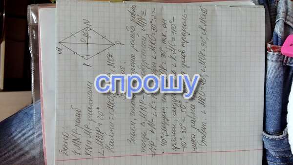 Диагонали ромба KMNP пересекаются в точке О найти углы ΔKOM, если ∠MNP = 80°