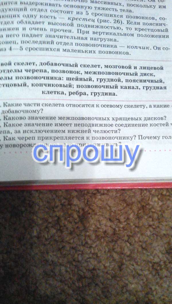 4)Череп прикрепляется к позвоночнику посредством первого шейного позвонка при помощи двух мыщелков, что позволяет поднимать и опускать голову. У первого шейного позвонка нет тела, в процессе эволюции оно срослось с телом второго шейного позвонка и образовало зуб — ось, вокруг которой в горизонтальной плоскости вместе с головой вращается первый шейный позвонок. От спинного мозга зуб отделяет особая связка, состоящая из соединительной ткани. Она непрочна у грудных детей, поэтому их головку необходимо поддерживать во избежание травмы.