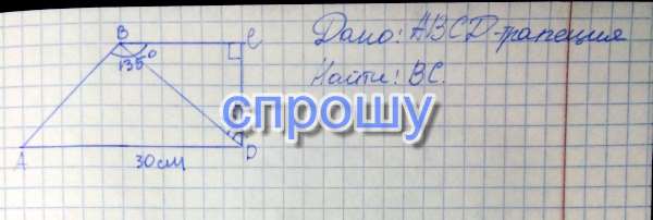 Дана трапеция ABCD, в которой известно, что угол B = 135градусов. <С = 90градусов,