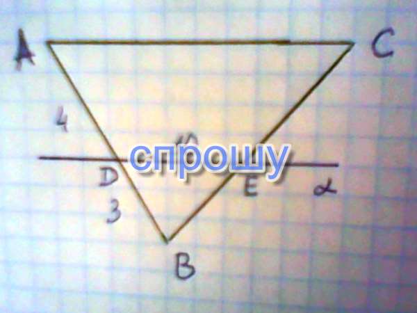 1. Плоскость пересекает стороны АВ и ВС треугольника АВС в точках Д и Е соответственно, причем АС параллельна плоскости . Найдите АС, если ВД: АД = 3:4,ДЕ = 10.