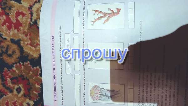 Заполни схему, вписав классы типа Кишечнополостных