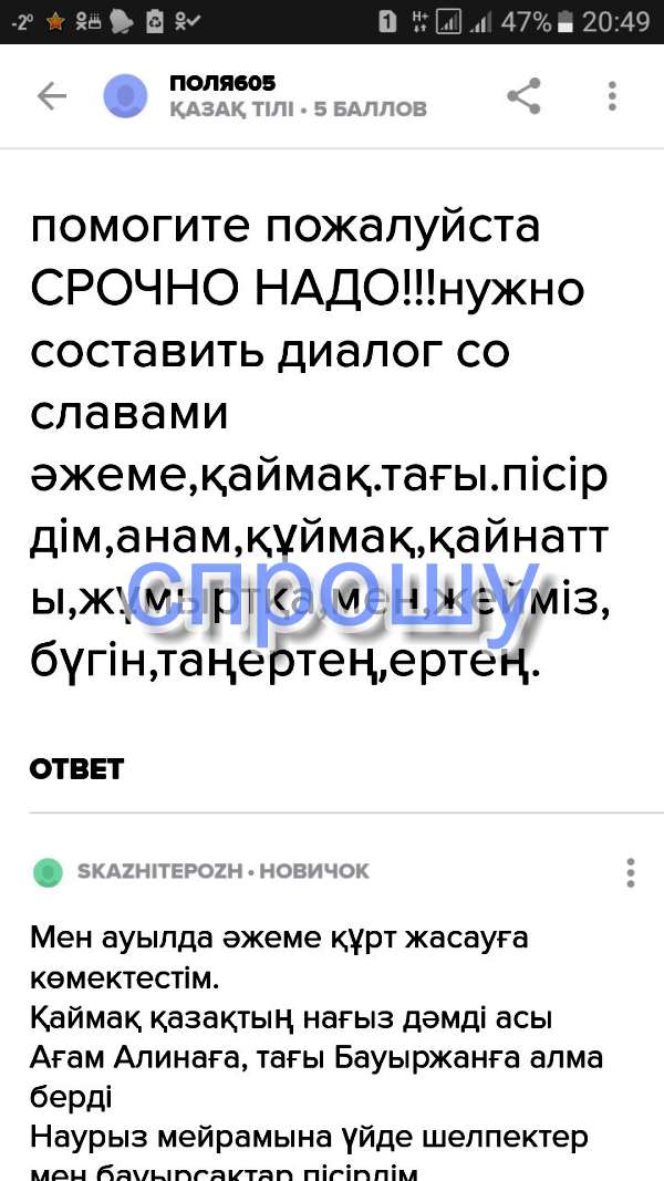 - Мен бұны əжеме апарамын. Əжем маған құймақ, қаймақ жасап береді.