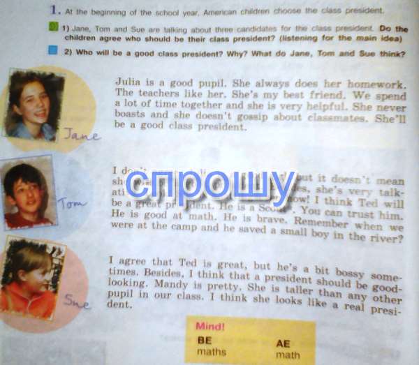 Я согласна, что Тэд хороший выбор, но он не всегда может быть руководителем. Я считаю, что президент должен хорошо выглядеть. Мэнди красивая. Она выше всех в нашем классе. Я думаю, она будет выглядеть, как настоящий президент.