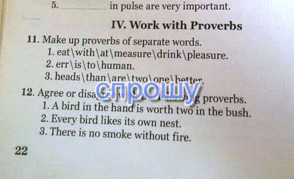 1) eat at pleasure, drink with measure. 2) to err is human. 3) two heads are better than one.