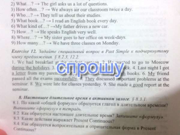 Задай специальный вопрос в Past Simple к подчеркнутому члену предложения.