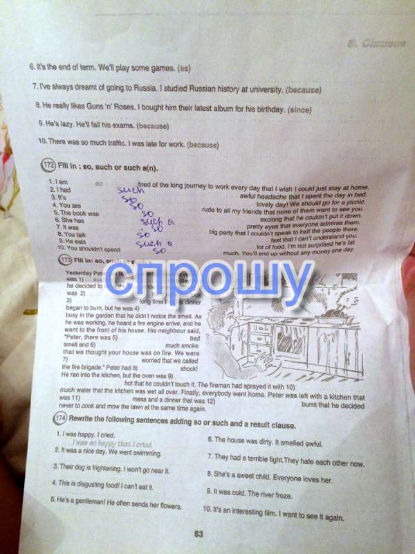 сверху предложения, а рядом слова в скобках, их нужно вставить в предложения