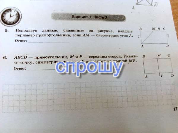 1-ая задача довольна простая, AM - биссектриса обозначим угол BAM и ADM 1 и 2, а угол BMA - 3 . BC||AD получаем что угол 2 равен углу 3, но угол 1 равен углу 2, получаем что ABM равнобедренный треугольник и получаем что BM = 7, площадь прямоугольника a*b =gt; 7*16=112. Ответ: 112 =)