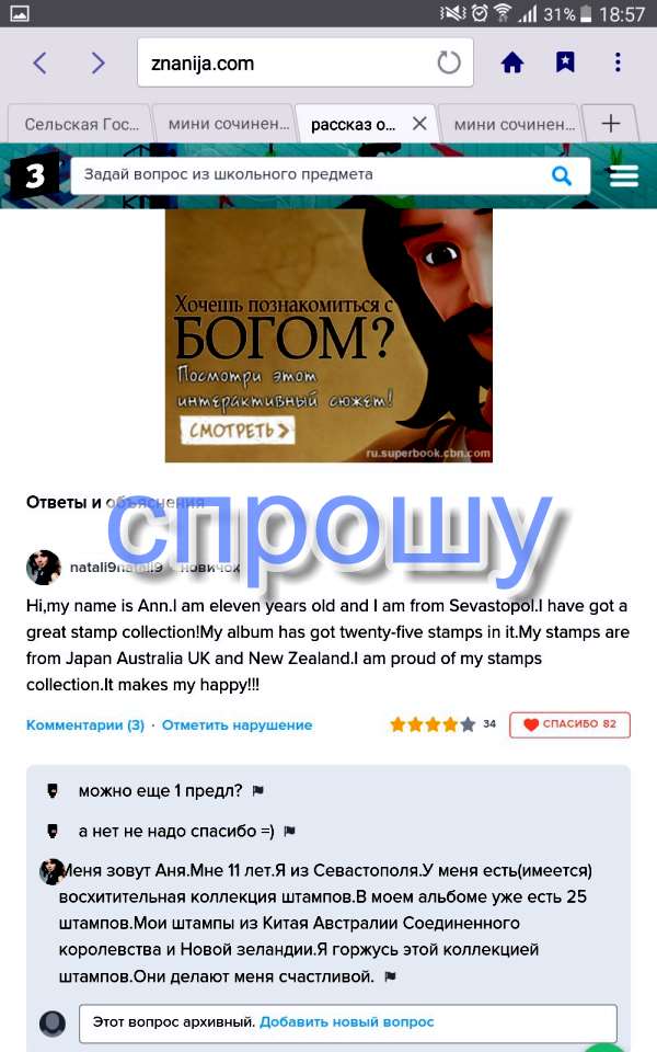 Напишите мини сочинение. Про коллекцию кукол. Слов 30-50. На английском языке.Срочно!!!!
